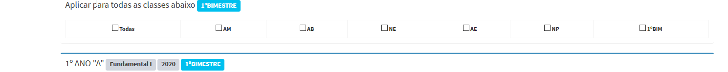 5) Agora selecione o que gostaria de liberar para o lançamento. É possível fazer para todas as classes a mesma liberação, ou tratar a classe/disciplina manualmente.